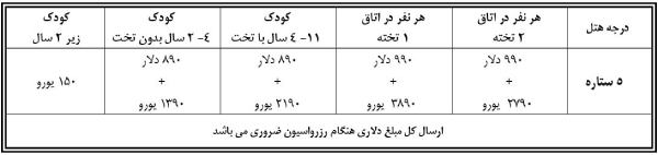 ⦁ درصورت عدم صدور روادید از طرف سفارت مربوطه 10% مبلغ ریالی تور و هزینه های مربوط به ترجمه از مبالغ پرداختی کسر و مابقی مسترد می گردد.