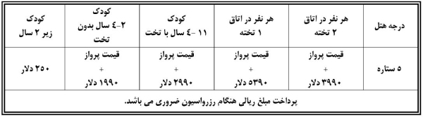 ⦁ ارائه ضمانت بازگشت از سفر حداقل مبلغ 400،000،000 تومان برای هر نفر به صورت ضمانتنامه بانکی یا چک رمزدار ضروری است که پس از بررسی مدارک در صورت نیاز به ضمانتنامه های بیشتر متعاقبا اعلام می گردد.